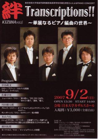 Matsuoka : Fantaisie pour la main gauche (La première audition) J.S.Bach / Brahms : Chaconne en ré mineur pour la main gauche seule Chopin / Godowsky : Etude no.5 (op.10-3) pour la main gauche seule en ré bémol majeur Strauss II / Godowsky : Métamorphoses Symphonique de thème de ''Schatz Walzer'' de l'Operetta "Zigeunerbalon" pour la main gauche seule etc. Tarif \1,000 |