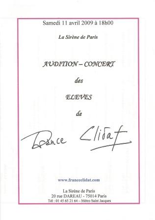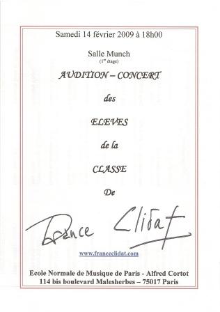 FRANCE) Audition-Concert des Elèves de France Clidat Chopin : Mazurka en la mineur op.59-1 etc. Entrée libre |
