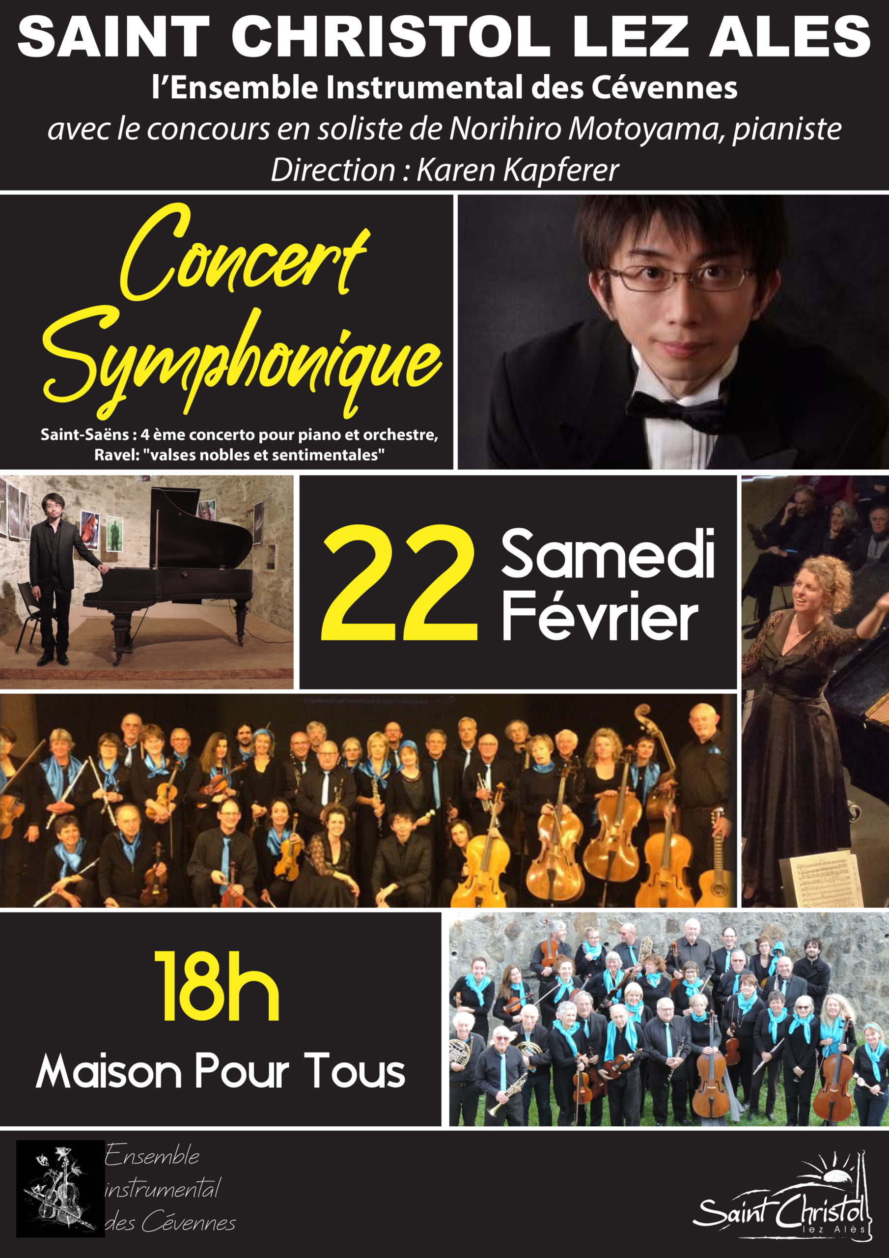 (サン・クリストル・レ・ザレス, フランス) コンセール・サンフォニーク ラヴェル:高雅で感傷的なワルツ (ピアノ・ソロ)* シャブリエ:ハバネラ シャブリエ:田園組曲より イディル サン=サーンス:ピアノ協奏曲 第4番 ハ短調 Op.44* [カレン・カプフェレル, 指揮] [セヴェンヌ器楽合奏団, 管弦楽] [* 本山乃弘 , ピアノ] |