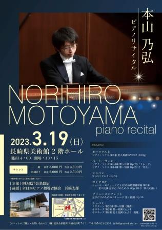 19.mars (dim.) 14:00 (13:15 ouverture de la porte de la salle) Hall au 1er étage au Musée de Nagasaki-ken (Nagasaki, JAPON) Récital de Piano de Norihiro MOTOYAMA Mozart: Sonate pour Piano no.4 en mi bémol majeur KV 282 (189g) Beethoven: Sonate pour Piano no.24 eh fa dièse majeur Op.78 "Thérèse" Sonate pour Piano no.14 en do dièse mineur Op.27-2 "Sonata quasi una fantasia" (Clair de Lune) 〜entr'acte〜 Chopin: 3 Mazurkas Op.59 Chopin/Godowsky: Etude no.5 (Chopin : Etude op.10-3) pour la main gauche seule en ré bémol majeur Blumenfeld: Etude pour la main gauche seule en la bémol majeur Op.36 Chopin: Nocturne no.20 en do dièse mineur Op.posthume "Lento con gran espressione" Polonaise no.5 en fa dièse mineur Op.44 Polonaise no.6 en la bémol majeur Op.53 "Héroïque" Plein Tarif Billet à l'avance \3,000 (le jour même \3,500) Moins 25ans Billet à l'avance \2,000 (le jour même \2,500) [Organisé par ] Genyokai-Gakkiten Co. [Suporté par] La section Nagasaki de PTNA Contact 095-821-2326 info@genyo-kai.com |